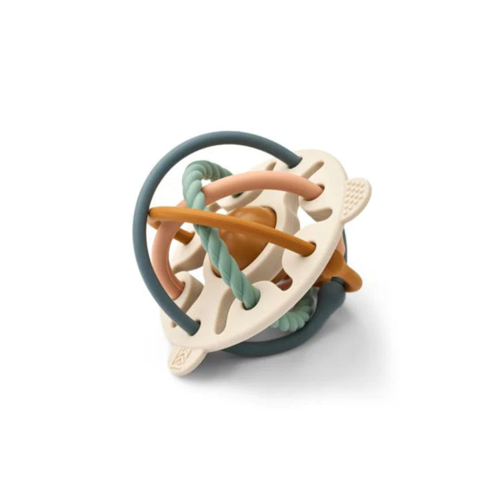 Für kleine Entdeckerinnen – die Hakim Silikon-Rassel „Sandy Multi Mix“ von Liewood. Diese liebevoll gestaltete Rassel in planetenförmigem Design vereint Spielspaß und Zahnfleischpflege. Der Körper und die Ringe bestehen aus superweichem Silikon, der Kern aus robustem Kunststoff. Jede Seite überrascht mit einer eigenen Textur, sanft zum Zahnfleisch und ideal zur Förderung der Sinne und der Feinmotorik.