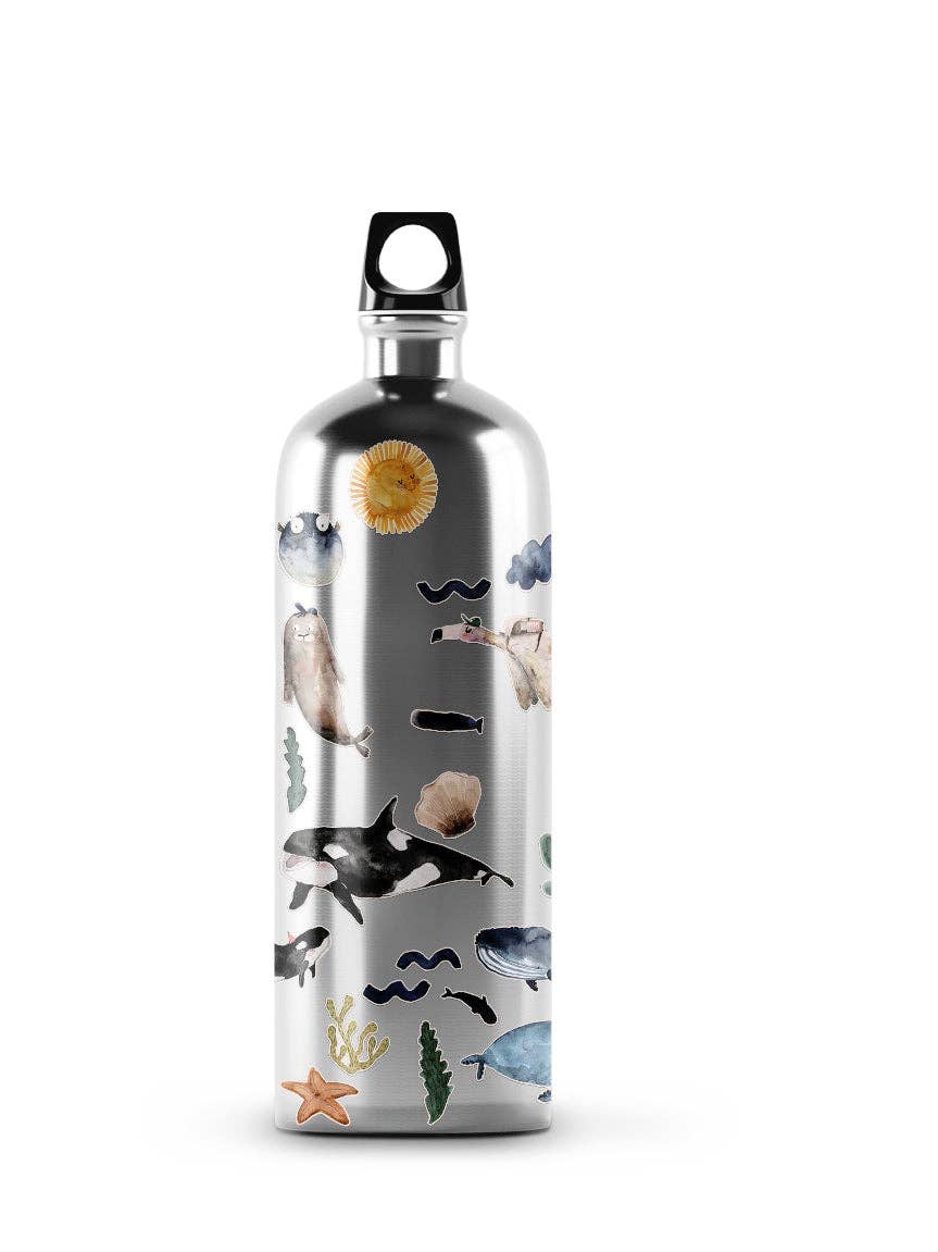 Verleihe deinen Alltagsgegenständen einen Hauch von Ozean! Die spülmaschinenfesten Sticker „Meereswelt“ von Halfbird sind perfekt, um Trinkflaschen, Brotdosen, Tassen oder Fahrräder in kleine Meereskunstwerke zu verwandeln. Mit Wal, Schwertwal, Delfin, Kugelfisch, Seestern und Otter bringst du Farbe, Spaß und gute Laune auf jede glatte Oberfläche.