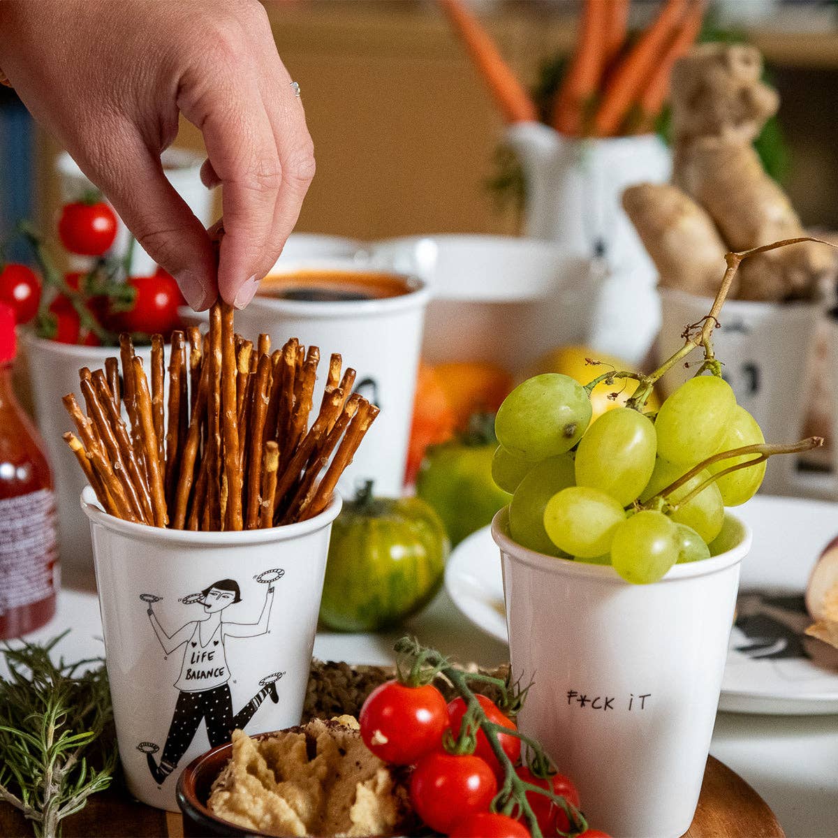 Ein Becher, der Geschichten erzählt: Die liebevoll gestalteten Porzellanbecher von Helen b bringen Humor, Charakter und Design in deinen Alltag. Jedes Stück wird von Hand gefertigt und mit einer schwarzen Linienzeichnung auf gebrochen weißem Hintergrund versehen – typisch für den unverwechselbaren Stil der belgischen Illustratorin Helen Blanchaert.