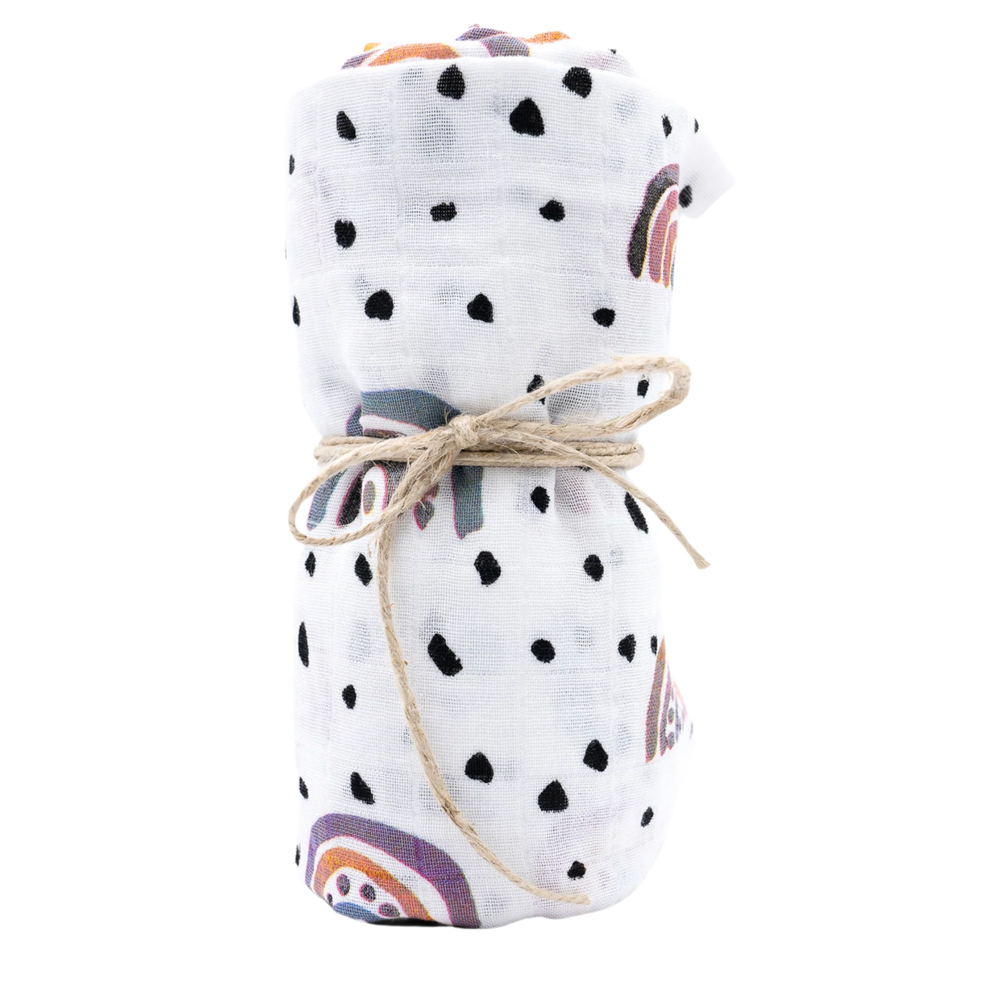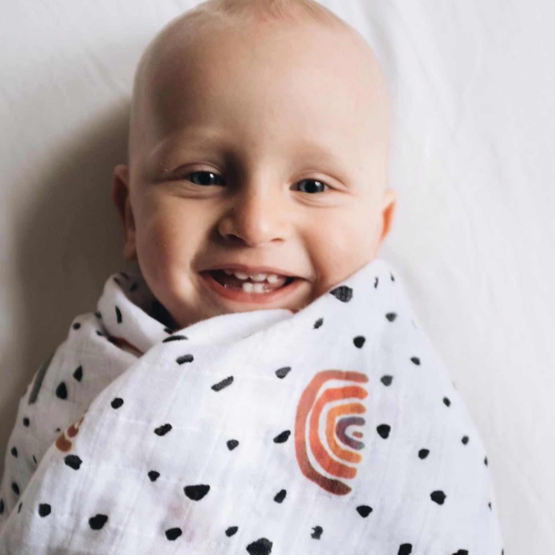 Geschenkt oder selbst gekauft - das Mulltuch mit Regenbogen-Druck ist ein Must-Have! Vielseitig einsetzbar und ein echter Allrounder.