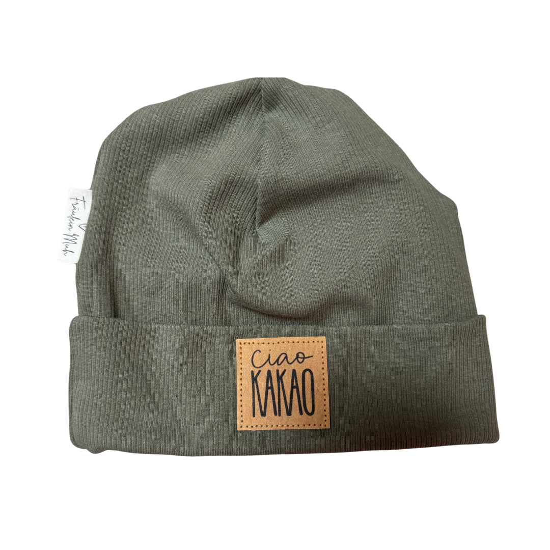Olivgrüne Mütze mit "Ciao Kakao" von Fräulein Muh, verschiedene Größen