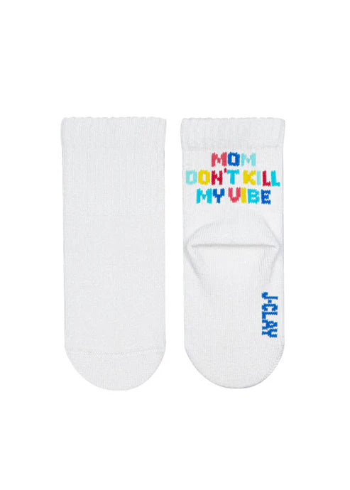 Socken mit "Mom, don´t kill my Vibe" Aufschrift für Babys und Kinder bis 4 Jahre