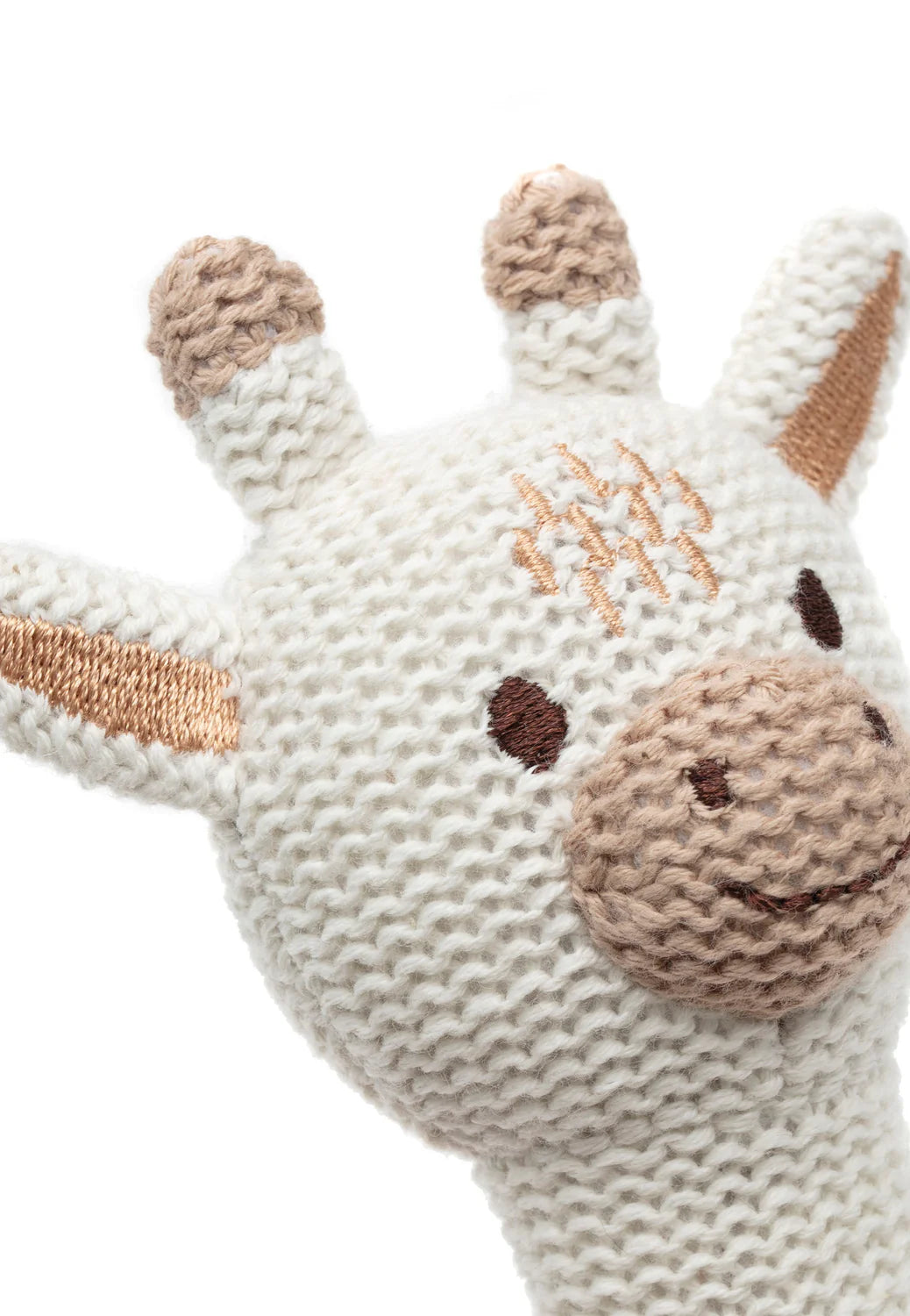 Diese gestrickte Giraffen-Rassel von "Jollein" ist der perfekte Begleiter für dein Baby! Mit ihrem niedlichen Tiergesicht und den kleinen Glöckchen sorgt sie für endlosen Spielspaß. Die süße Rassel zieht deinen kleinen Schatz sofort in den Bann und ist ein tolles Geschenk für werdende Eltern oder zur Geburt.