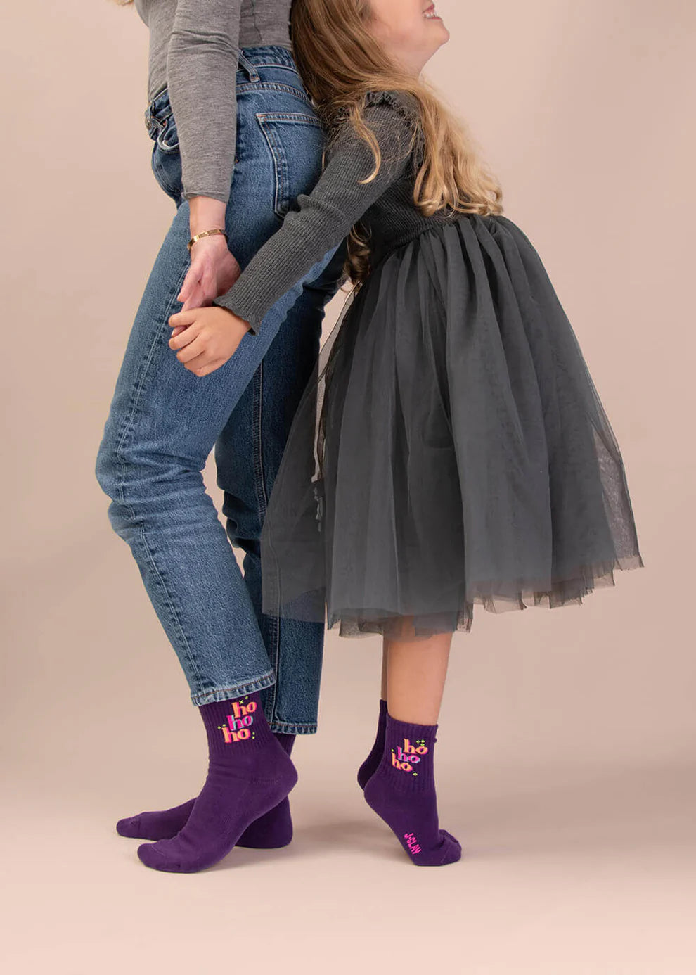 Dank der weichen Baumwollmischung fühlen sich die Socken angenehm auf der Haut an, sind atmungsaktiv und besonders elastisch – ideal für kleine Füße in Bewegung. Die weihnachtliche Aufschrift „Ho Ho Ho“ sorgt für leuchtende Augen und macht die Socken zu einem festlichen Hingucker unter dem Weihnachtsbaum.