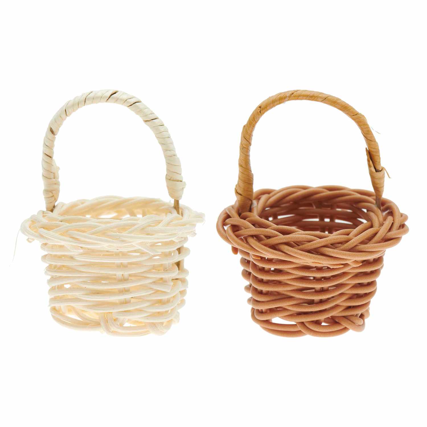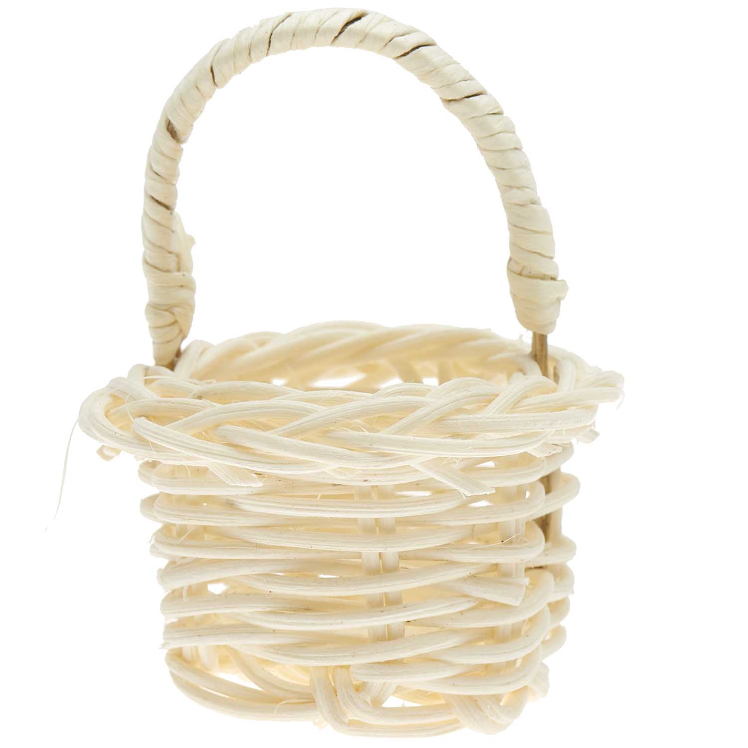 Weißer Miniatur Korb mit Henkel als Zubehör für die Wichtelwelt