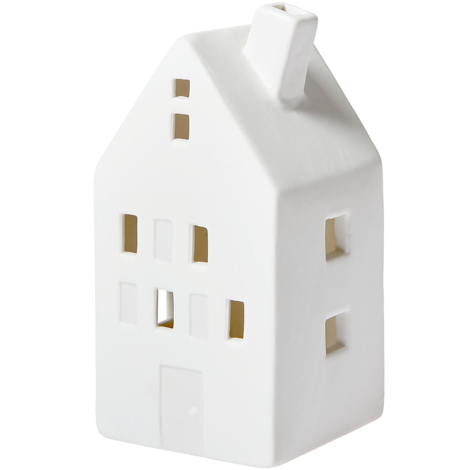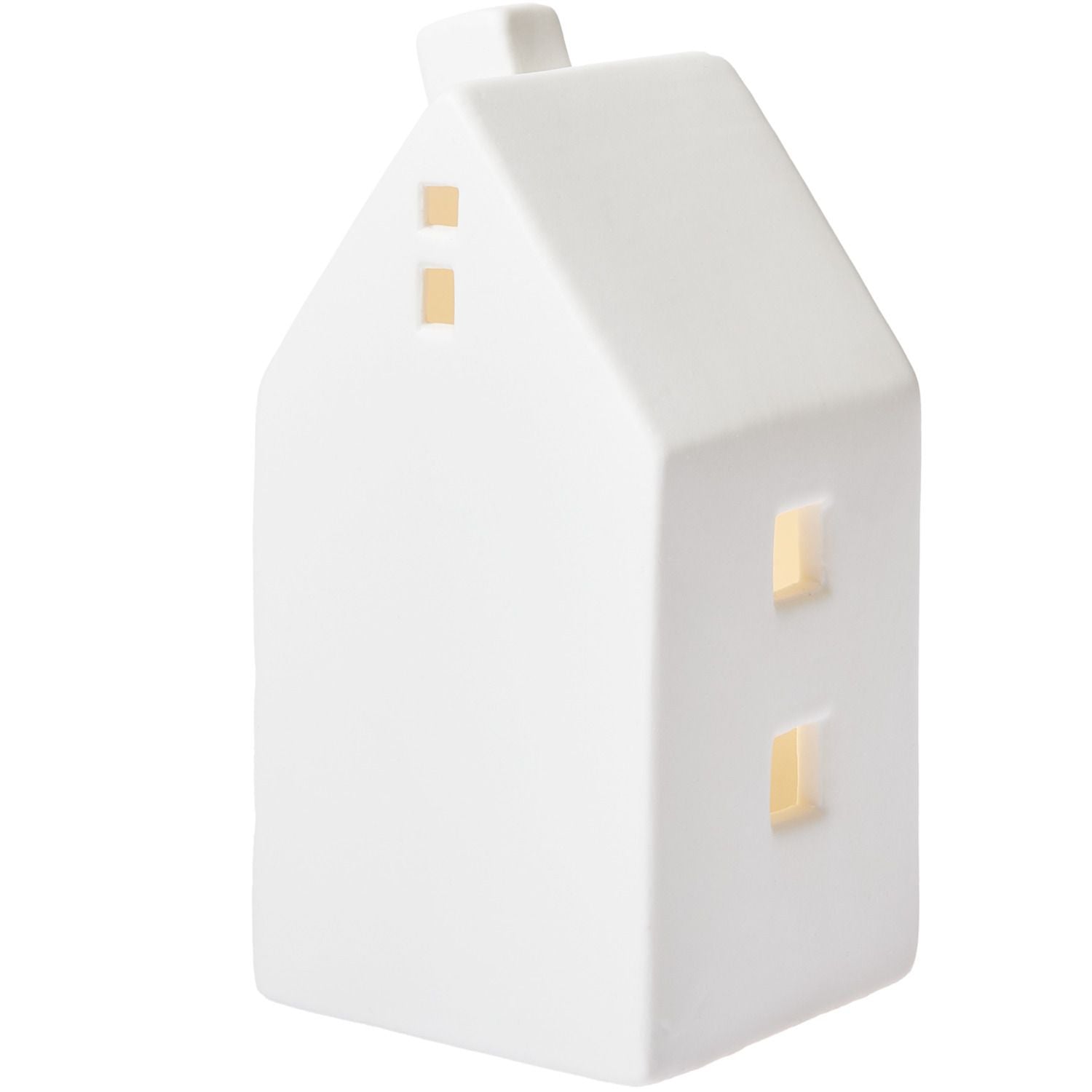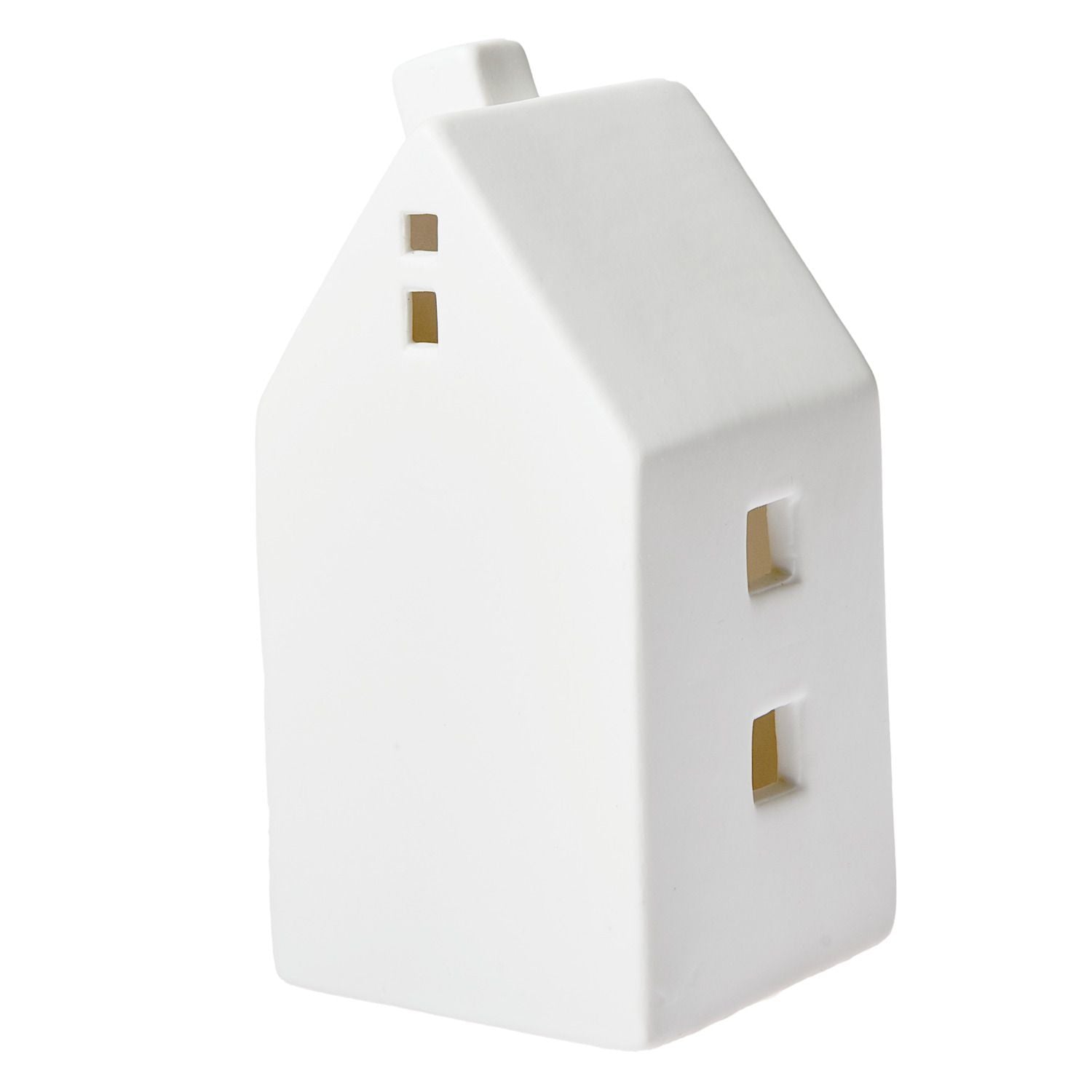 Weißes Deko-Haus mit Giebeldach mit LED Beleuchtung von Rico Design